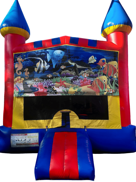 Bring the party to life with this ocean themed castle bounce house, perfect for birthdays, school events, and backyard fun. Featuring bright primary colors, mesh sides for visibility, and a spacious jumping area, it’s a safe and exciting inflatable kids will love! Add a banner and change the theme of your party!